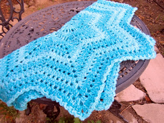 Updated January 5, 2012: I made this doily as a blanket and am really happy with the final product. I just kept repeating the rows until it was as big as I wanted. Very cool. Better pictures to come later! :) I used two strands of yarn. JoAnn Sensations in a variagated blye colorway and a bright blue Lion Brand Pound of Love. Same colors as the Gina's Shells Scarf.